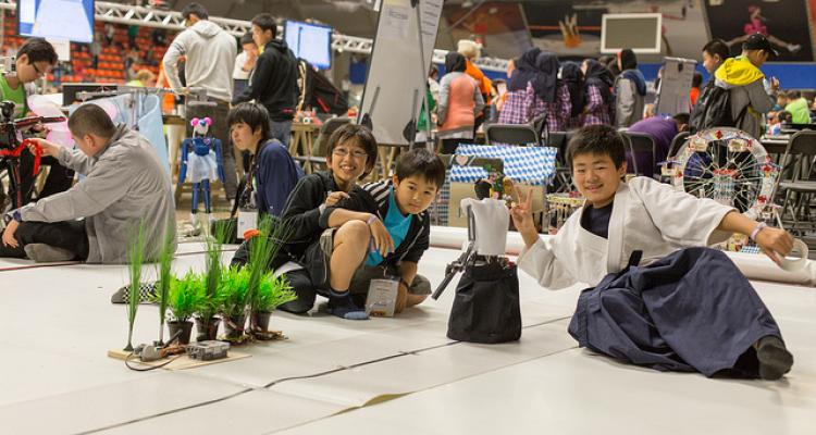 Besides the competitions for university teams, the RoboCup has designed the RoboCup Junior for younger people. It is designed to introduce RoboCup to primary and secondary school pupils, to build and program a robot by themselves. Beside the soccer robots, the pupils are also able to build a dance robot and a rescue robot. There are competitions for the ages of 9-14 and 15-19. The event offers the participants to learn a lot about technical aspects, but it also offers social skills. Every participant knows a lot about his or her own field of study (electronics, programming, etc.). To let a robot work, the different parts should match with eachother, so the participants have to work together.